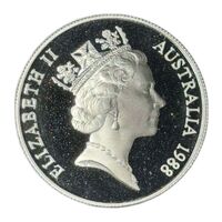 In 1988, Australia celebrated the bicentenary of the landing of the First Fleet. To commemorate the occasion, the Royal Australian Mint produced the 1988 Australia $10 Bicentenary coin, which is highly collectible for its bullion silver content. These coins have a face value of $10 but are primarily traded as silver bullion due to their high silver content. They were minted in uncirculated and proof quality, and are similar in design to the State Series coins and the 10 dollar Bird Series. The coins are 34mm in diameter, weigh 20 grams, and are made of 92.5% silver and 7.5% copper.