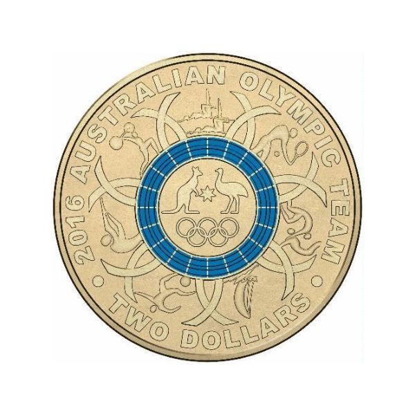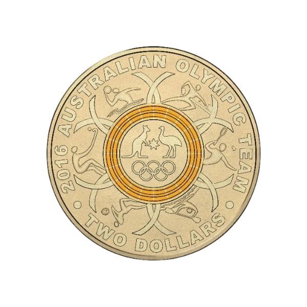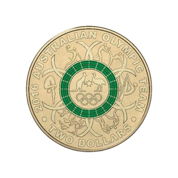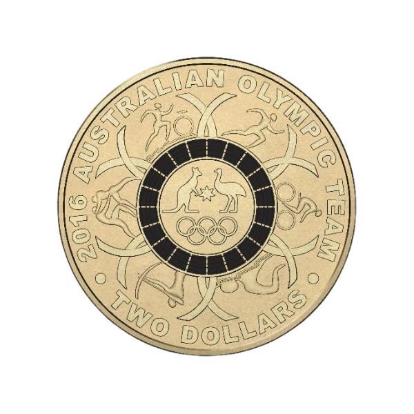 - Reverse designs showcase an array of sports contested at the 2016 Rio Olympics surrounding the official Australian Olympic Team logo (kangaroo, emu, and rings), with a central coloured ring loop that interlocks when the set is united.