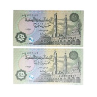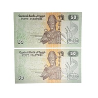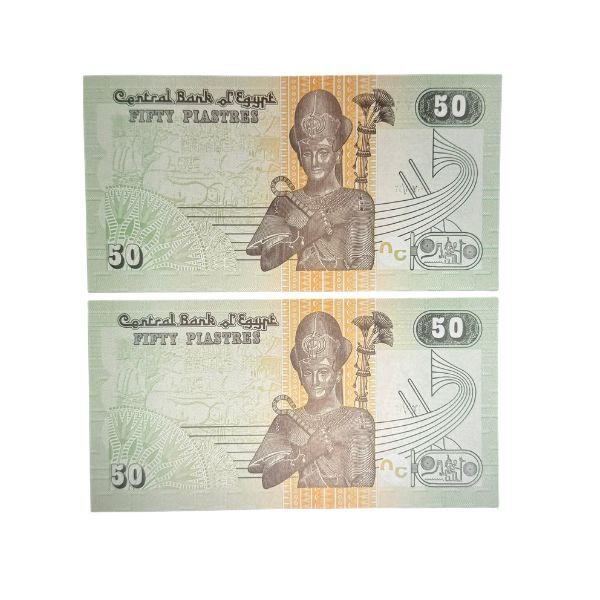 2017 Egyptian 50 Piastres Consecutive Serial Number Uncirculated Pair of Banknotes