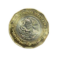 - Obverse features the national coat of arms of Mexico; legal tender $20 MXN face value