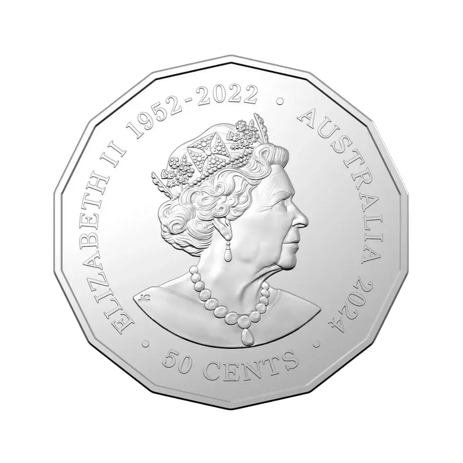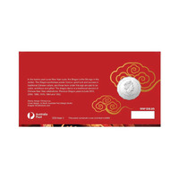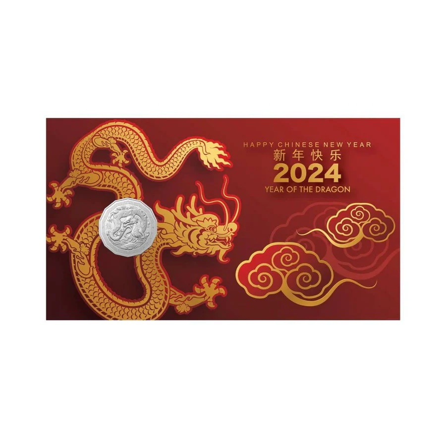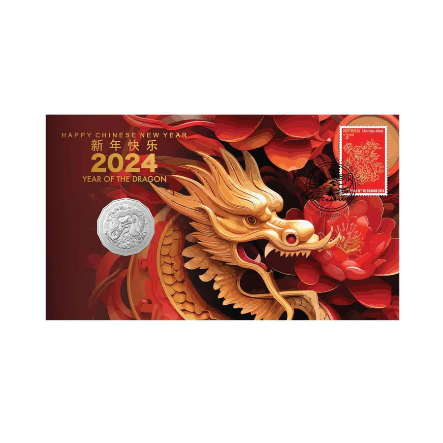 The 2024 50c Year of the Dragon Tetradecagon (RAM) PNC is a collectible item from the Royal Australian Mint. It includes a unique fourteen-sided coin featuring a design related to the Year of the Dragon, housed in a cover combining numismatic and philatelic elements. Great for collectors interested in cultural themes and the combination of coins and stamps.