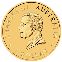Obverse showcases King Charles III portrait, denominated at $1 Australian Dollar, struck in 99.99% pure silver.