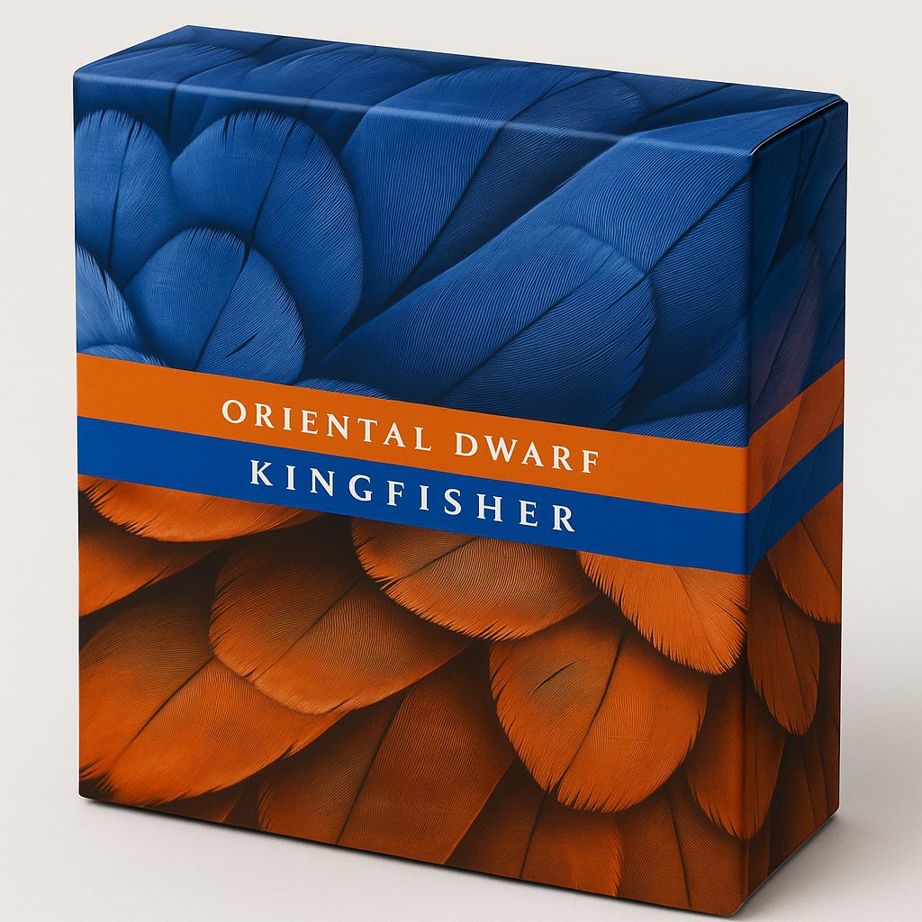 Discover one of nature’s most dazzling jewels with the 2025 Oriental Dwarf Kingfisher 1oz Coloured Silver Proof Coin. This exquisite release captures the breathtaking beauty of one of the world’s smallest and most colourful birds — the Oriental Dwarf Kingfisher. Measuring just 13 cm long, this tiny forest gem boasts a glowing golden-orange body, a deep violet crown, and brilliant cobalt-blue wings, earning it the nickname “The Jewel of the Forest.”