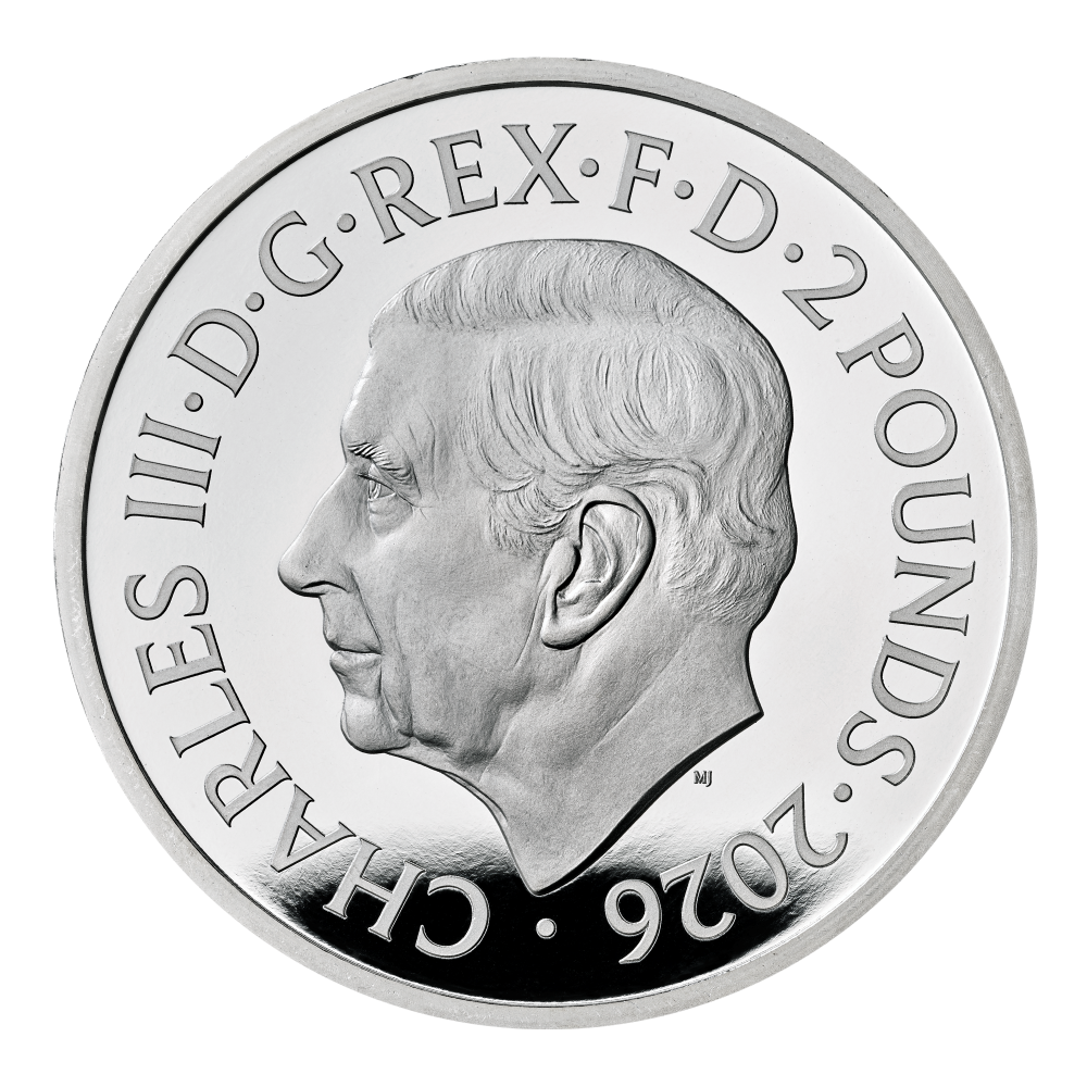 £2 Silver Proof Coin from The Royal Mint, weighing 31.21g (1oz).