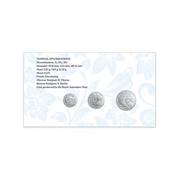 - Historic Three-Coin Set: Includes uncirculated 5c, 10c, and 20c coins featuring the first circulating effigy of King Charles III in Australia.