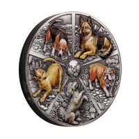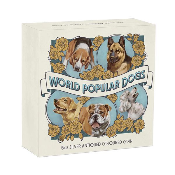 2025 $5 World Popular Dogs 5 Oz Silver Antiqued Coloured Coin