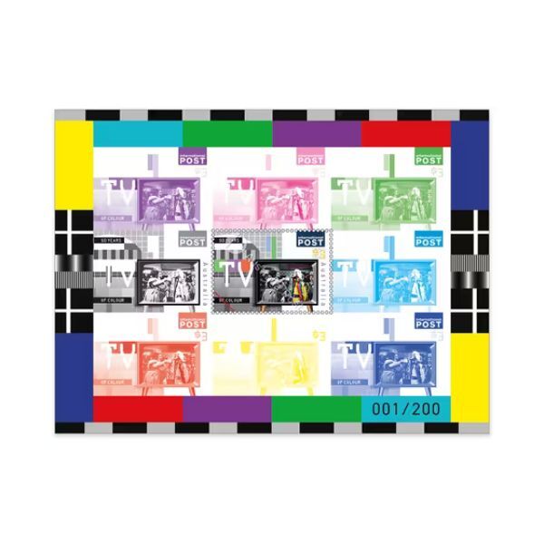 - Exclusive 10-stamp pane in test pattern format, celebrating Australian colour TV debut
