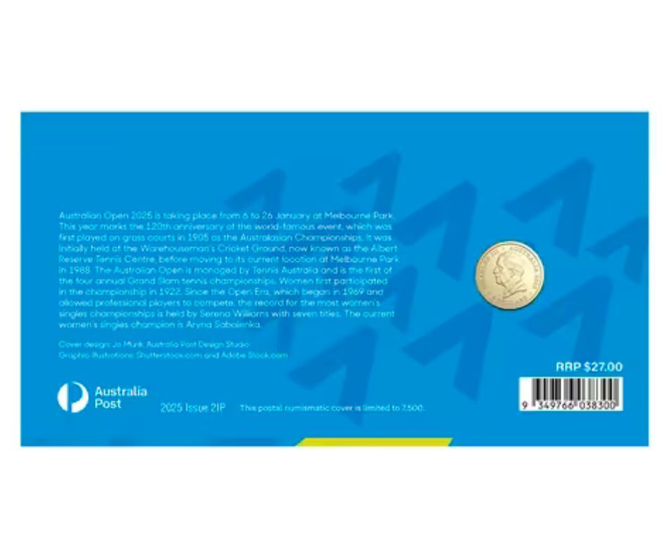 Volley your collection to new heights with the 2025 Australian Open Women's Postal Numismatic Cover (PNC), a dazzling tribute to the fierce and fabulous women of the Grand Slam! Limited to just 7,500 worldwide, this exclusive release from Australia Post and the Royal Australian Mint captures the electrifying energy of the Australian Open Women’s tournament. With its vibrant pictorial envelope and a specially minted coin, this PNC is a perfect match for tennis fans and collectors chasing a piece of Melbourne’s magic.