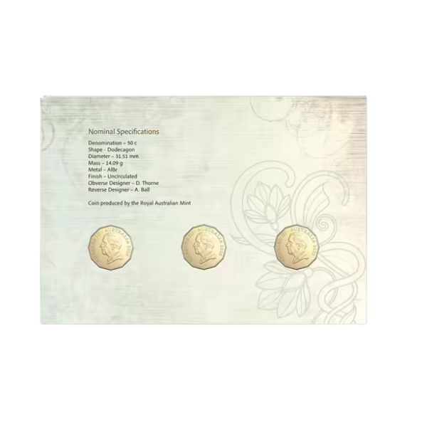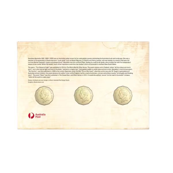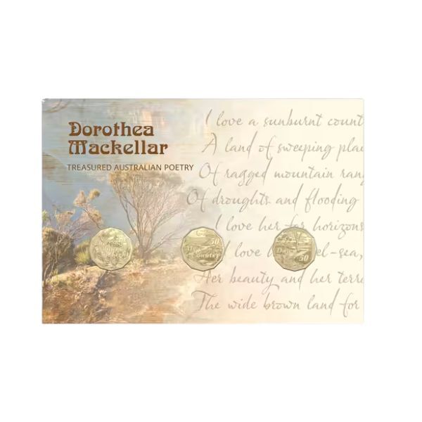 Includes three Royal Australian Mint gold-plated 50c coins honouring Dorothea Mackellar