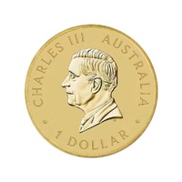 The obverse shines with Dan Thorne's effigy of His Majesty King Charles III, facing left amid "CHARLES III AUSTRALIA 2025 1 DOLLAR," struck in .9999 fine gold (30.7mm diameter, 3.4mm thickness) for premium lustre and legal tender value. The envelope's artwork fuses modern muscle car imagery with historical context on the Falcon's evolution, featuring a first-day postmark and $1.70 stamp value—merging philatelic heritage with numismatic brilliance in a protective sleeve, primed for the shelf or showcase as a golden farewell to an era.