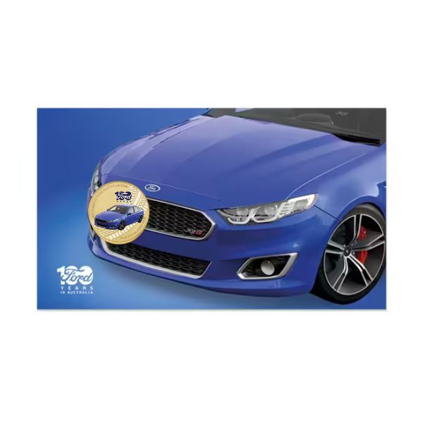Shift into high gear with this limited-edition Postal Numismatic Cover marking Ford's century in Australia, honouring the 2014 FG-X XR8 Falcon—the last of its breed, blending raw V8 power with advanced engineering as Broadmeadows prepared to close its doors. This PNC combines a gleaming 1oz gold $1 coin with a commemorative stamp on a dynamic blue envelope, postmarked from Geelong on the centenary date. The coin's reverse showcases the sleek blue XR8 in full throttle against a road motif, inscribed "100 YEARS OF FORD AUSTRALIA 2014" with the Ford logo, capturing the Falcon's enduring Aussie soul. Limited to just 6,000 covers, it's a revved-up essential for Ford loyalists and collectors closing the chapter on local legend.