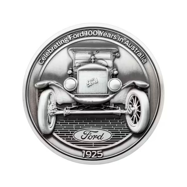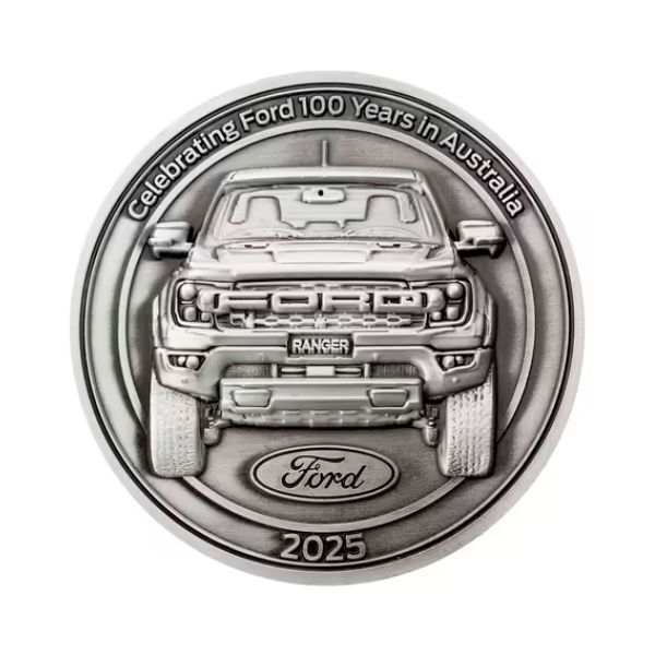 - Commemorative Inscriptions: Medallions inscribed "Celebrating Ford 100 Years in Australia" and respective years (1925/2025), with reverse messages thanking contributors to "building Ford's legacy".