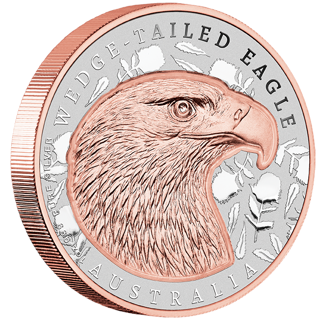 A powerful and visually striking low-mintage collectible that captures the strength and beauty of Australia’s iconic Wedge-Tailed Eagle in rose gold and silver.