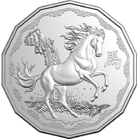 - Includes uncirculated Royal Australian Mint 50c coin with high-relief galloping horse design