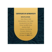 Struck from 1oz of 99.9% pure silver to flawless proof quality, the coin is elegantly finished with 24-carat gold plating for a warm, luxurious glow that enhances every fine detail. Measuring 38.60mm in diameter, it features the effigy of King Charles III on the obverse and is official Niue legal tender with a $1 face value. Presented in a premium black presentation case with a gold-accented outer shipper box displaying vibrant floral and fauna artwork, this exclusive release is strictly limited to just 1,250 pieces worldwide (your coin's mintage number shown as 0002/1250 in images; yours will be a random number from the series). A perfect keepsake for decimal currency collectors, royal enthusiasts, or anyone appreciating Australia's enduring wildlife legacy and this significant milestone.