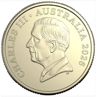 This brilliant uncirculated $1 coin features the much-loved high-relief design of six kangaroos in motion — five in the traditional arrangement plus the newly added sixth roo leaping above the group. The reverse proudly displays “1 DOLLAR” integrated into the scene, while the obverse carries the effigy of King Charles III with “CHARLES III · AUSTRALIA · 2026”.
