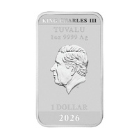 - Premium Silver Composition: Struck from 1oz of 99.99% pure silver with a fineness of 99.99 and a rectangular shape measuring 47.60 x 27.60 mm.