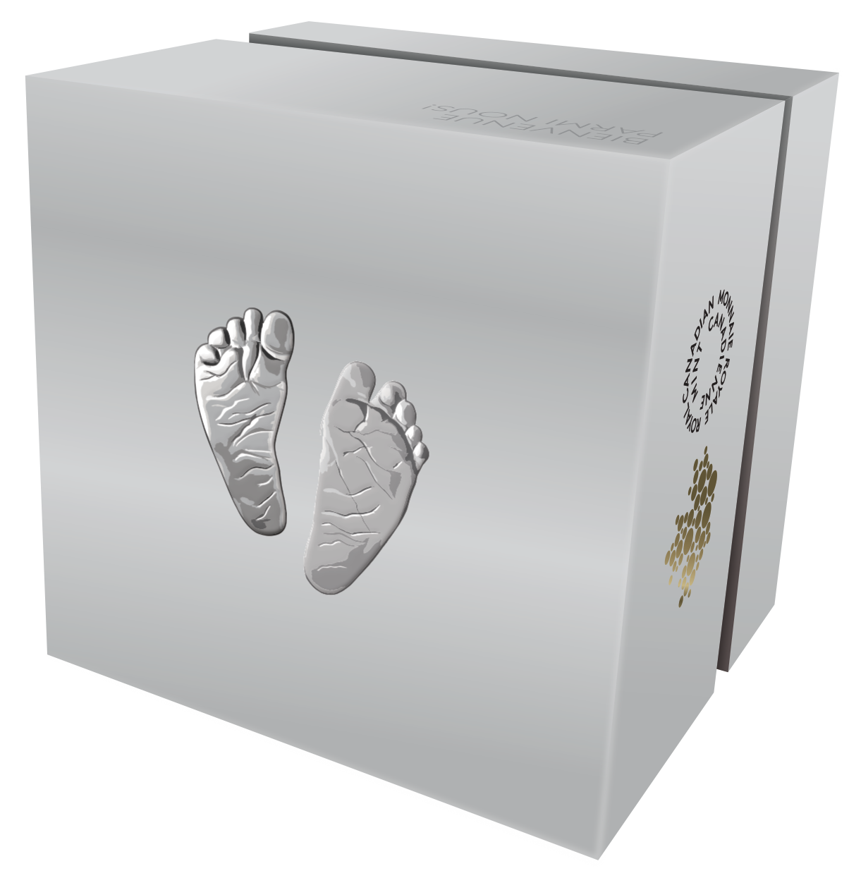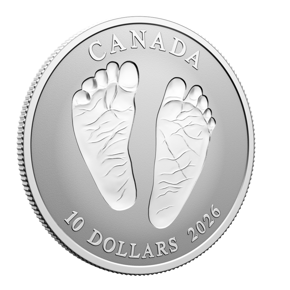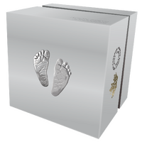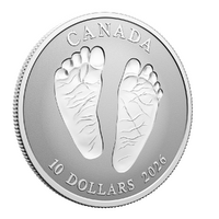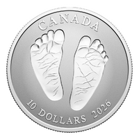 This endearing coin captures the essence of that happy time with a heart-warming design of baby feet struck incuse into the coin, like footprints in the sand. But unlike sand that shifts and fades with time, these imprints are pure silver and will last forever!