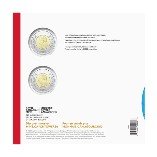 - Official Royal Canadian Mint 2026 $2 coin commemorating the 50th Anniversary of the CN Tower