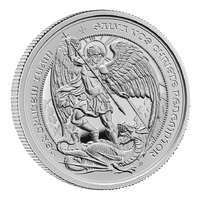 - The reverse of the coin depicts the Archangel Michael slaying Satan, who is represented as a dragon