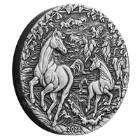 Celebrate the arrival of the Year of the Horse with the 2026 $2 Australian Lunar Series III 2oz Silver Antiqued Coin, a breathtaking tribute to the seventh animal in the Chinese zodiac cycle. Renowned for embodying strength, independence, and good fortune, the horse takes center stage in this exclusive antiqued edition from the Perth Mint. The reverse bursts with motion as a herd of powerful horses surges forward through turbulent waters, their manes flowing and hooves splashing, framed by graceful ginkgo foliage—a motif unique to this particular 2026 release and not replicated in other formats. With a strictly limited mintage of only 1,888 pieces globally, this coin combines cultural resonance with premium craftsmanship, making it a prime choice for zodiac enthusiasts, Lunar Series completists, and investors seeking tangible silver with heirloom potential.