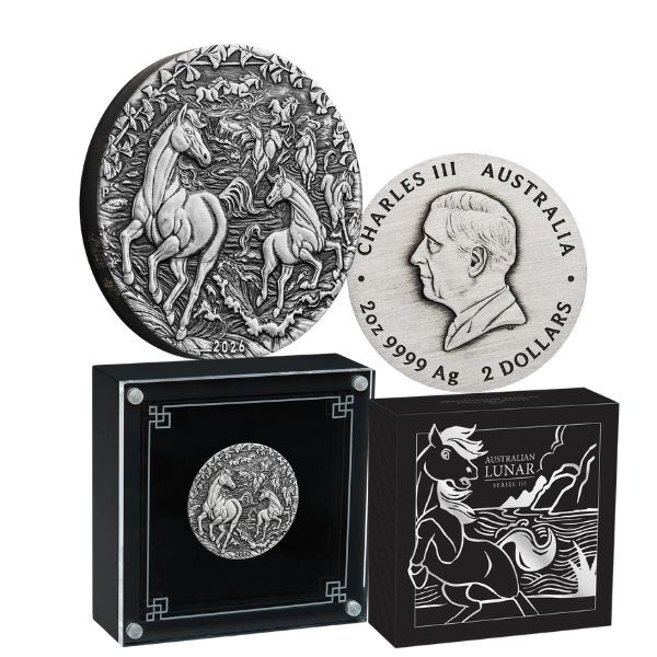 Encased in a premium Perth Mint presentation box that accentuates its substantial 40.69mm diameter and weighty feel, this antiqued masterpiece is designed for both display and protection. The obverse maintains regal tradition with the contemporary portrait of King Charles III, affirming its status as legal tender while bridging Eastern symbolism with Australian numismatic excellence. Ideal as a meaningful gift for those born in previous Horse years (1930, 1942, 1954, 1966, 1978, 1990, 2002, 2014) or welcoming 2026 babies, this coin delivers enduring value through its rarity, purity.