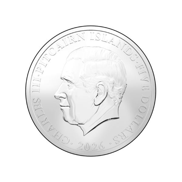 - Official legal tender $5 coin issued by Pitcairn Islands