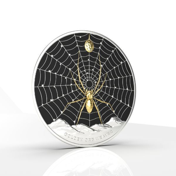 Capture the beauty of one of nature’s master engineers with this stunning 2026 $5 Golden Orb Weaver silver proof coin from Pitcairn Islands. Struck in a full 1oz of 99.99% pure silver to flawless proof quality, the coin features a highly detailed, lifelike depiction of the iconic Golden Orb Weaver spider suspended on its shimmering golden web, complete with intricate leg textures and the subtle golden sheen that gives this species its name.
