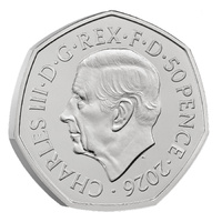 - Official 2026 50p Brilliant Uncirculated coin from The Royal Mint
