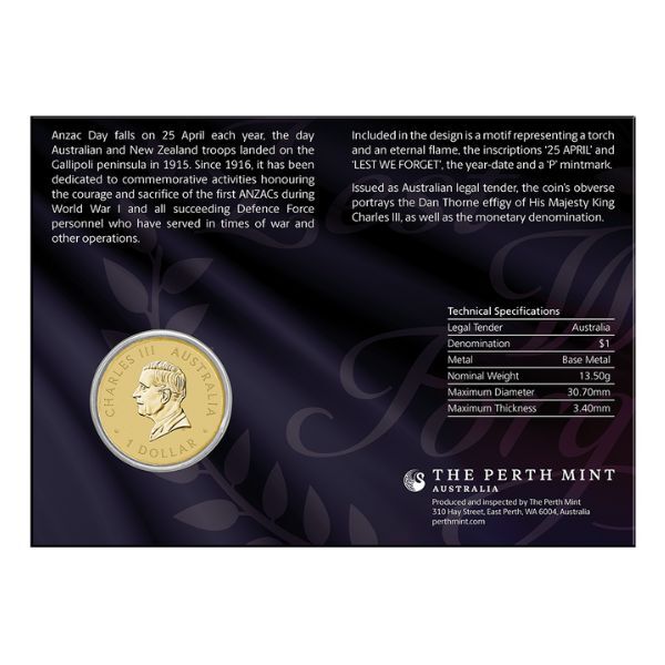 - Issued as Australian legal tender and perfect for ANZAC Day gifting or collecting