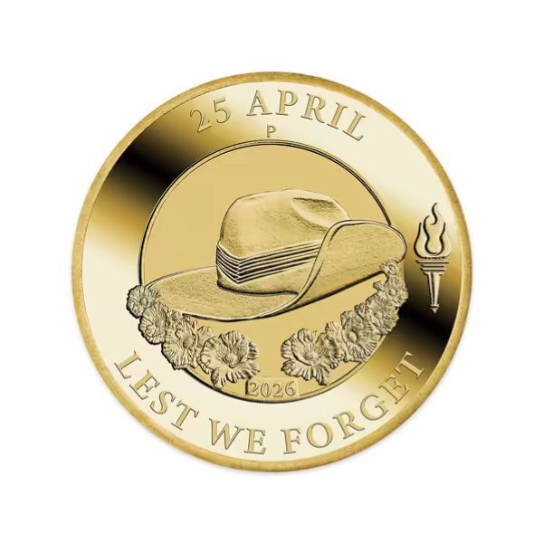 - Contains a genuine Royal Australian Mint $1 uncirculated coin featuring the slouch hat and “Lest We Forget”