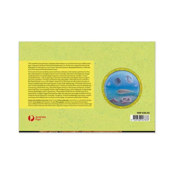- Includes the complete set of four $1.70 stamps depicting iconic Palaeozoic organisms, showcasing the dawn of complex life and early biomineralisation 500 million years ago.