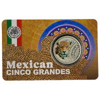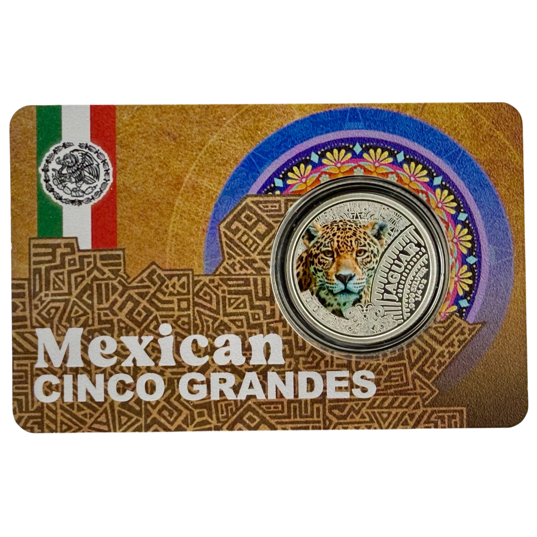 Housed in a specially designed collector card featuring rich Aztec-inspired patterns, the Mexican flag, and “Mexican CINCO GRANDES” text, each coin also includes a matching Certificate of Authenticity on the reverse. With a strict worldwide mintage of only 2,000 pieces, this is the perfect starter for anyone collecting the full Big 5 series (Jaguar, Golden Eagle, Gila Monster, Mexican Grey Wolf & Red-Knee Tarantula).