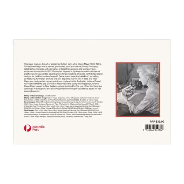 - Includes matching stamps highlighting Mayo's legacy as a British-born artist (1906-1994) renowned for her contributions to Australian philately and graphic design.