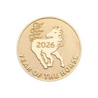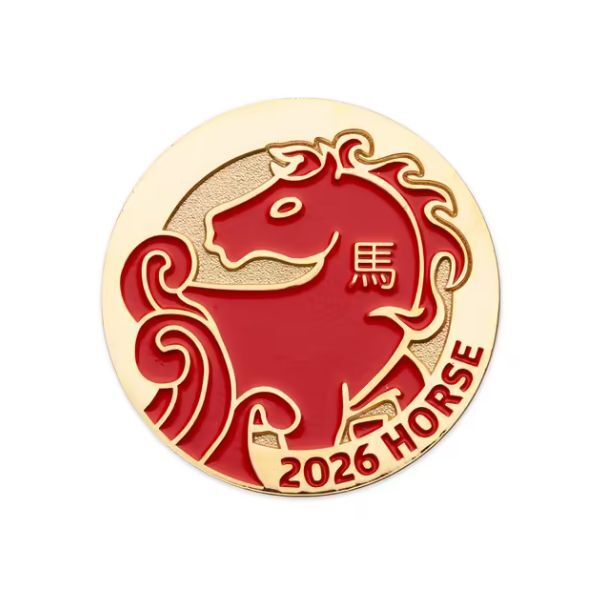 This 30 mm gold-plated zinc alloy medallion features soft enamel colouring for extra impact. One side shows a bold red horse head with flowing mane and the Chinese character 馬, while the reverse displays a graceful galloping horse with “2026 YEAR OF THE HORSE” and traditional cloud motifs. Each medallion is beautifully presented in a colourful yellow-to-orange gradient collector card with festive Lunar New Year artwork, making it a perfect keepsake or gift.