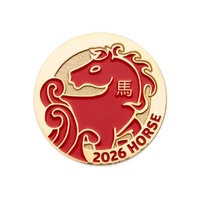 - Dual-sided design: red horse head with 馬 on one side and galloping horse on the other