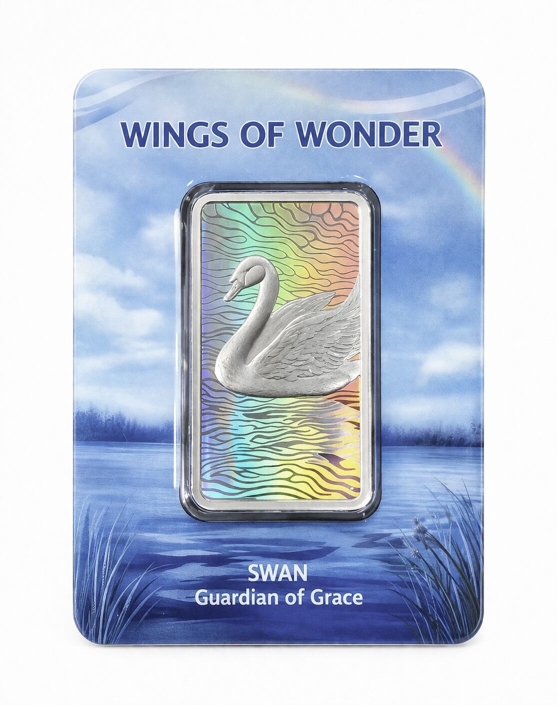 Experience breathtaking beauty with the second stunning release in Coins Australia’s Wings Of Wonder series — the 2026 Swan Guardian Of Grace 1oz .999 fine silver hologram minted bar. This magnificent bar features a highly detailed swan in graceful flight, brought to life with advanced hologram technology that creates a mesmerising rainbow water effect. As the light moves across the surface, the water appears to shimmer and flow in vivid, shifting colours, making the swan look like it is gliding across a sunlit lake.