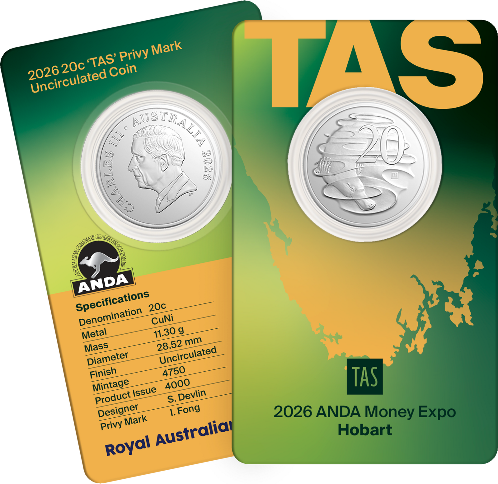 - Official 2026 Hobart ANDA Money Expo show special with exclusive 'TAS' (Tasmania) privy mark