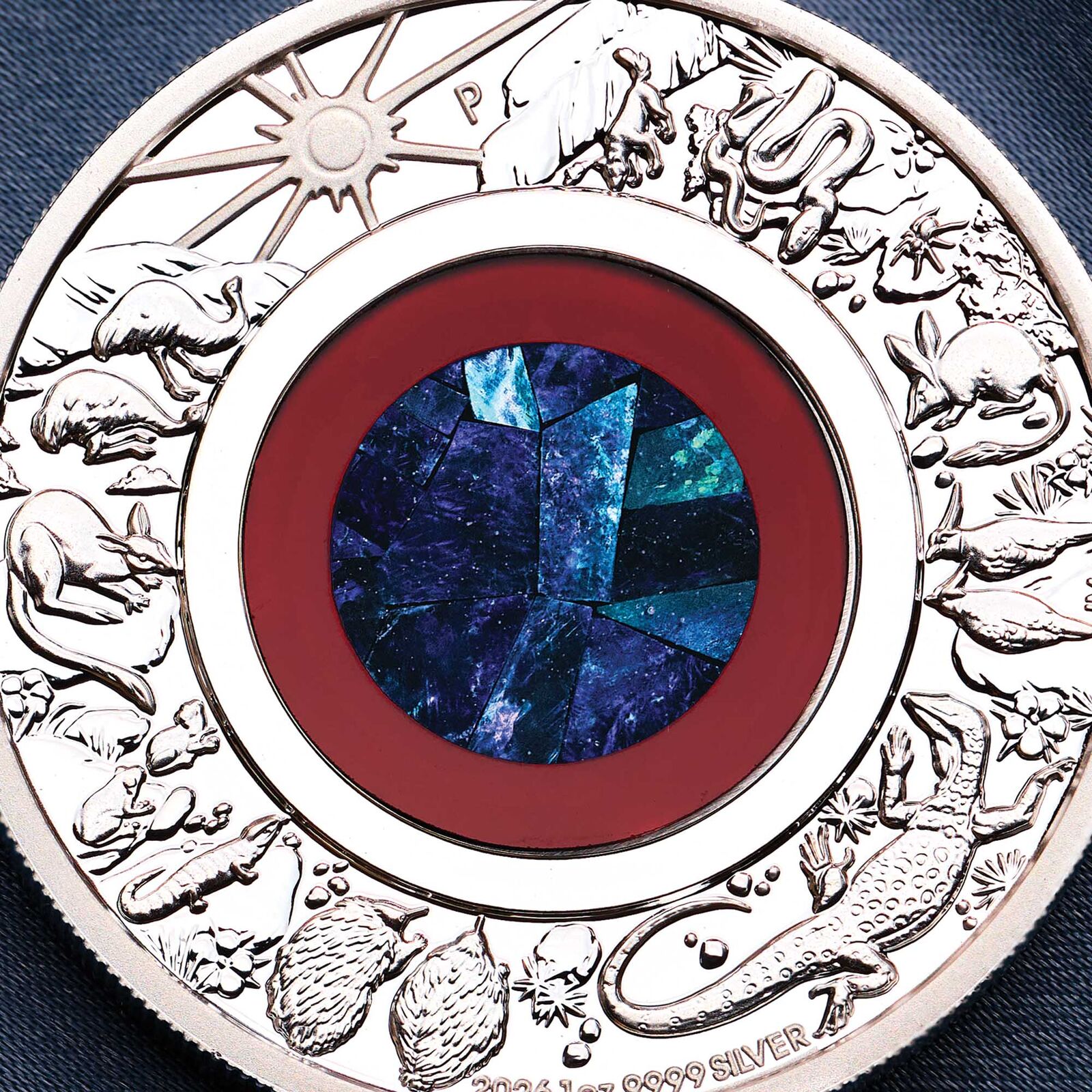 - Reverse border depicts iconic outback wildlife and terrain elements in intricate high-relief engraving, with 'P' mintmark