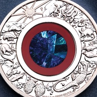 - Features a genuine round Australian opal insert at the centre, showcasing natural fiery colour variations unique to each coin