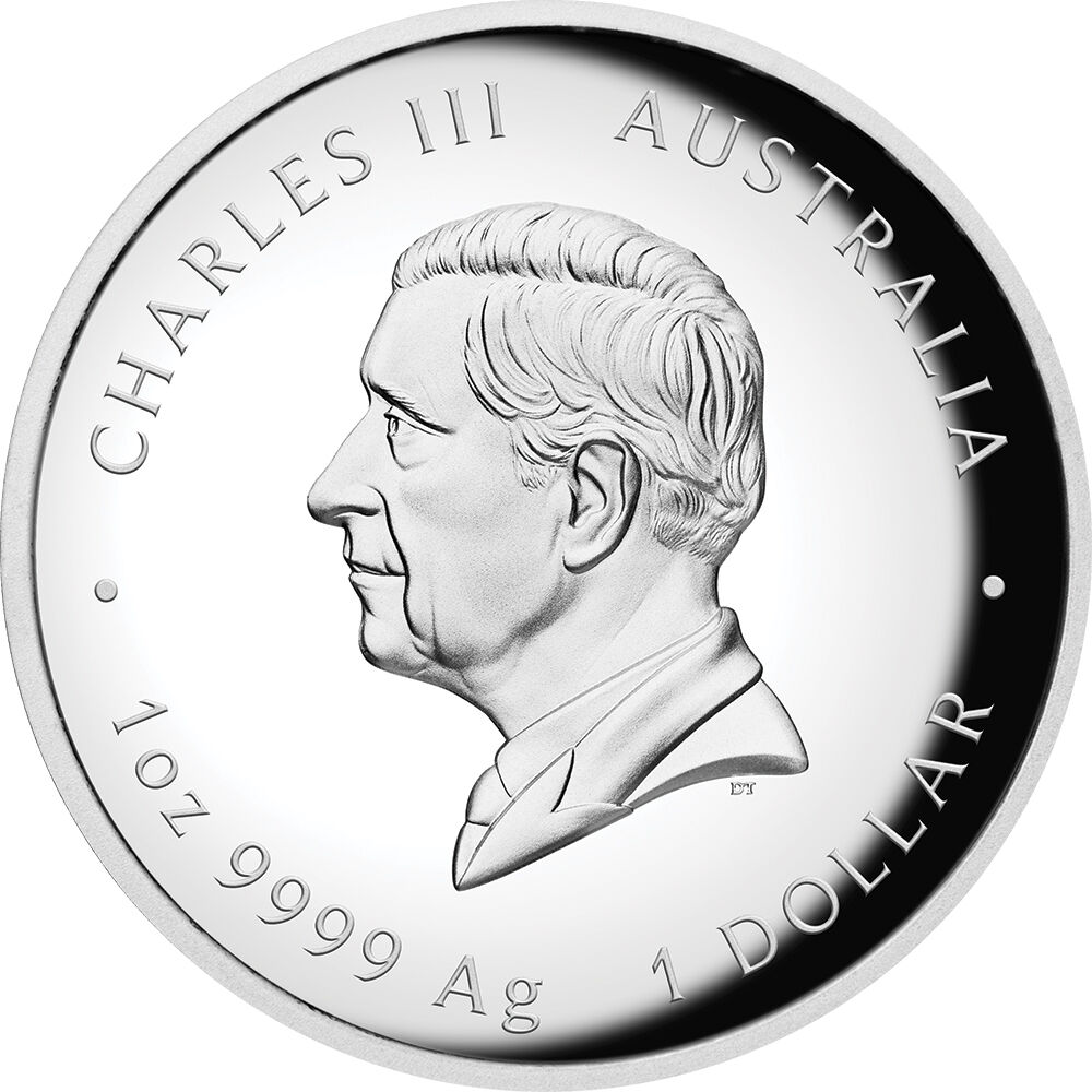 The reverse shows a mare and her foal galloping against a background of mountains and grassland. It includes the Chinese character for 'horse', the inscription “HORSE 2026” and the Perth Mint’s 'P' mintmark. The design is by Ing Ing Jong. The obverse features Dan Thorne’s effigy of His Majesty King Charles III, with details of weight, fineness, and the monetary denomination. The coin uses high relief minting on concave surfaces.