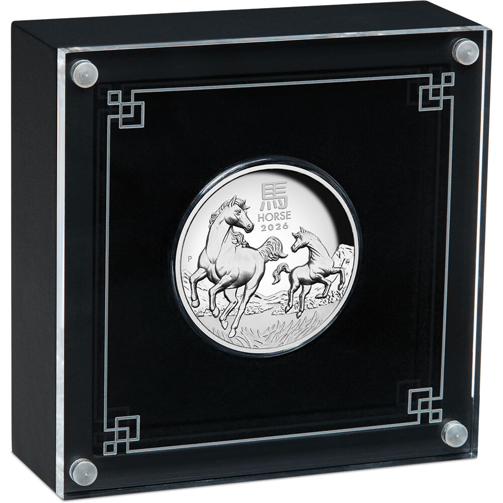 The Perth Mint presents the 2026 Year of the Horse 1oz Silver Proof High Relief Coin from the Australian Lunar Series III. This release marks the Year of the Horse in the lunar calendar, from 17 February 2026 to 5 February 2027. According to tradition, the horse finished seventh in the emperor's race after being startled by a snake. Those born under this sign are said to be independent, charismatic, and adventurous.
