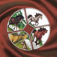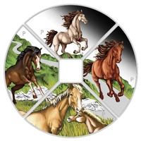 Crafted to proof standards in .999 fine silver, each of the four 1oz coins (totaling 31.107g per set) measures 45mm in diameter with 3.0mm thickness, featuring mirror-polished fields, frosted reliefs, and hand-applied enamelling in earthy browns, greens, and golds for lifelike vibrancy that makes the horses seem poised to leap from the metal. The obverse of each quadrant displays Jody Clark's effigy of His Majesty King Charles III facing left, inscribed "CHARLES III TUVALU 1 DOLLAR 1oz 9999 Ag 2026," affirming their status as legal tender from Tuvalu. Encased in a custom black display frame with protective acrylic cover and housed in a luxurious red lacquered box with gold-foil accents, this set arrives with a numbered certificate of authenticity—ideal for zodiac collectors, equestrian enthusiasts, or those seeking a prosperous talisman for the coming year.