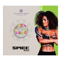 Each coin is housed in its own unique collector card style — five different designs, each celebrating one Spice Girl with exclusive artwork, bold colours, and iconic imagery that perfectly reflects her individual personality, style, and role in the group. The cards include full technical specifications, a short band history, and official Spice Girls branding.