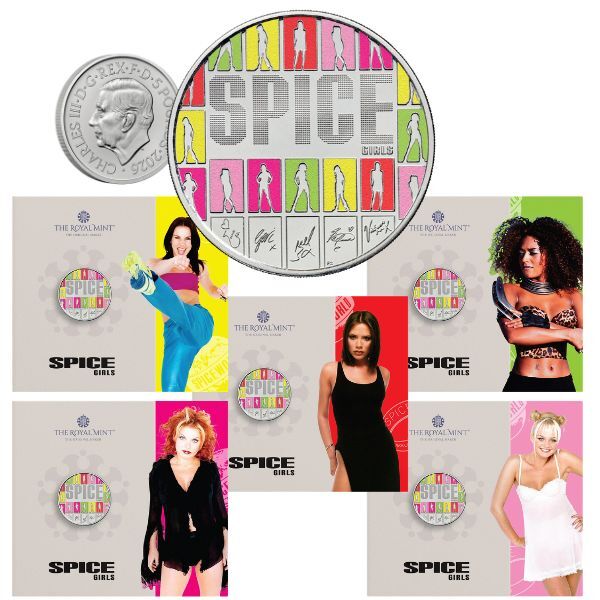 5 x 2026 £5 The Spice Girls Coloured Brilliant Uncirculated Coin Set Of All Card Styles