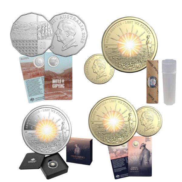 Whether you’re building a serious ANZAC collection, looking for a meaningful gift, or want to own every major Dawn Service and Kapyong release in one go, this limited combo delivers outstanding variety and value. From the high-end silver proof finish right through to the bulk coloured roll ready for long-term storage, every piece captures the solemn beauty of the Dawn Service sunrise and the bravery of Australian and Commonwealth forces.