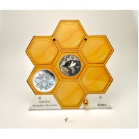- Clear base with engraved “Australian Honey Bee Silver Coin” label