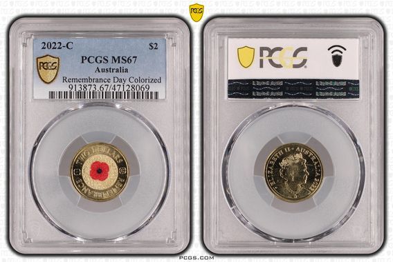 MS67 2022 $2 C Mintmark Remembrance Day Red Poppy PCGS Certification Number: 47128069