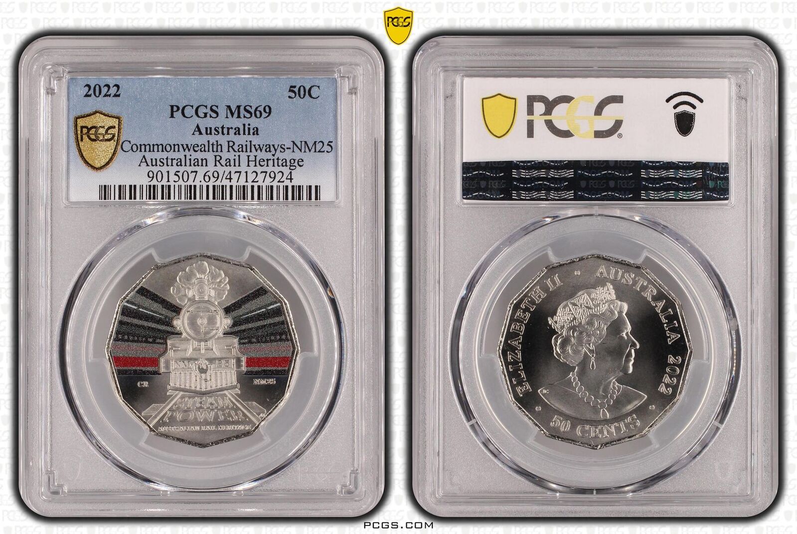 MS69 2022 50C Commonwealth Railways-NM25 Australian Rail Heritage PCGS Certification Number: 47127924